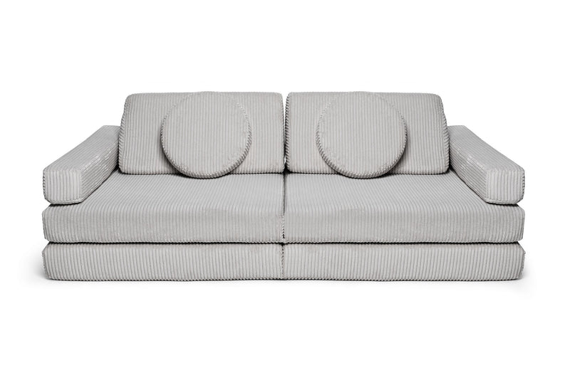 A modular play sofa that grows with your child. Build a sofa, a castle, a slide base - or a seamless play mat. Designed by parents in the EU, loved by families across Europe.