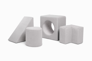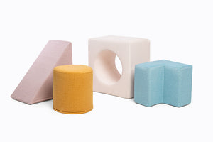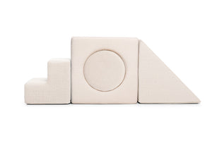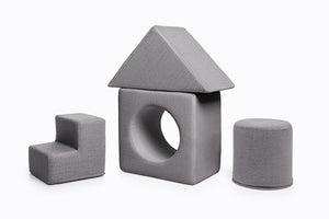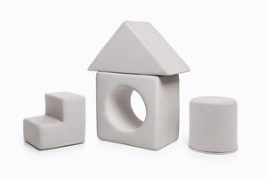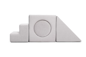 The playset is designed to perfectly complement both sizes of the Shappy play sofas. The elements can be easily arranged to integrate seamlessly with your existing sofa setup, enhancing both playtime and practical use.